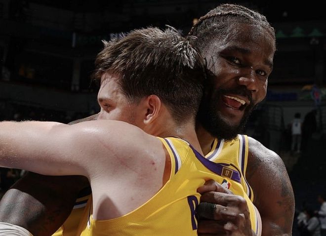裏夫斯牽製防守,湖人眾人拾柴火焰高,吃餅吃到飽!比如艾頓,拿到17分+10籃板+3助攻+1搶斷+1蓋帽,完爆戈貝爾,又硬又香;再比如克內克特,獨砍15分,扮演板凳奇兵;還有八村塁和範德彪,合砍20分+17籃板撐起內線!拉拉維亞也突然覺醒,打出湖人生涯最強一戰!拉拉維亞出戰37分鍾,11投10中(三分球6中5),罰球5中2,砍下27分+8籃板+2助攻+1搶斷+1蓋帽的全麵數據。據統計,拉拉維亞是湖人隊史自加索爾之後首位以90%以上命中率轟下25分的球員。賽後,裏夫斯直言:這是拉拉維亞進入NBA以來最厲害的一戰;雷迪克也把話挑明:這場比賽將成為拉拉維亞生涯的新標杆。