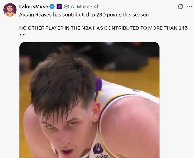 麵對裏夫斯這樣的表現,尤其是詹姆斯、東契奇缺席時,以“180俱樂部效率”場均拿下40.4分6.2籃板10助攻2.8搶斷,湖人隊記Harrison Faigen坦言,明年夏天裏夫斯將拿到4000萬美元年薪合同。