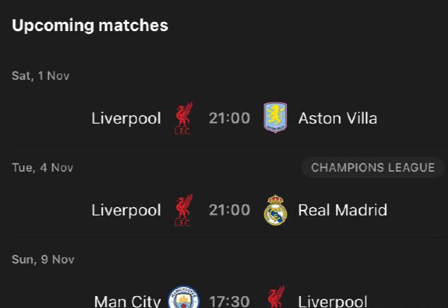 11月2號,利物浦先是在英超迎戰維拉,5號則到歐冠對陣皇馬,隨後將在10日回到英超客場挑戰曼城。短短8天內,利物浦就將迎來與三大強隊過招,對於眼下的利物浦而言無疑是艱巨挑戰。